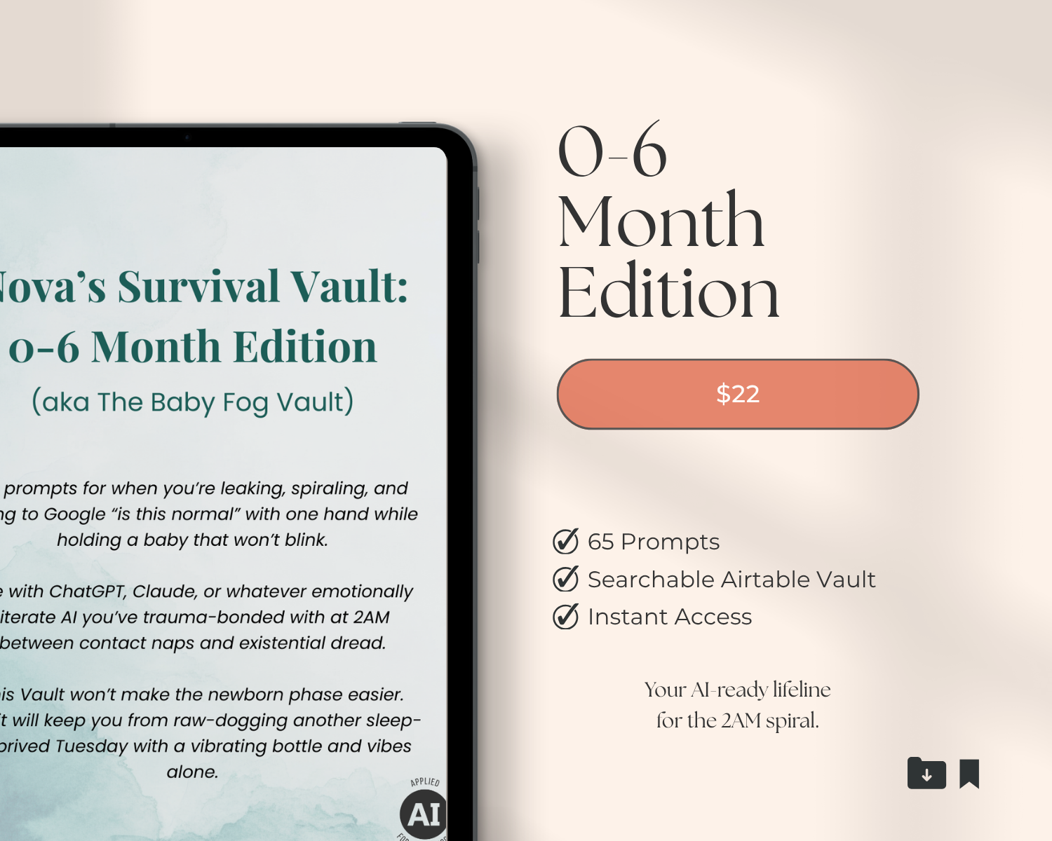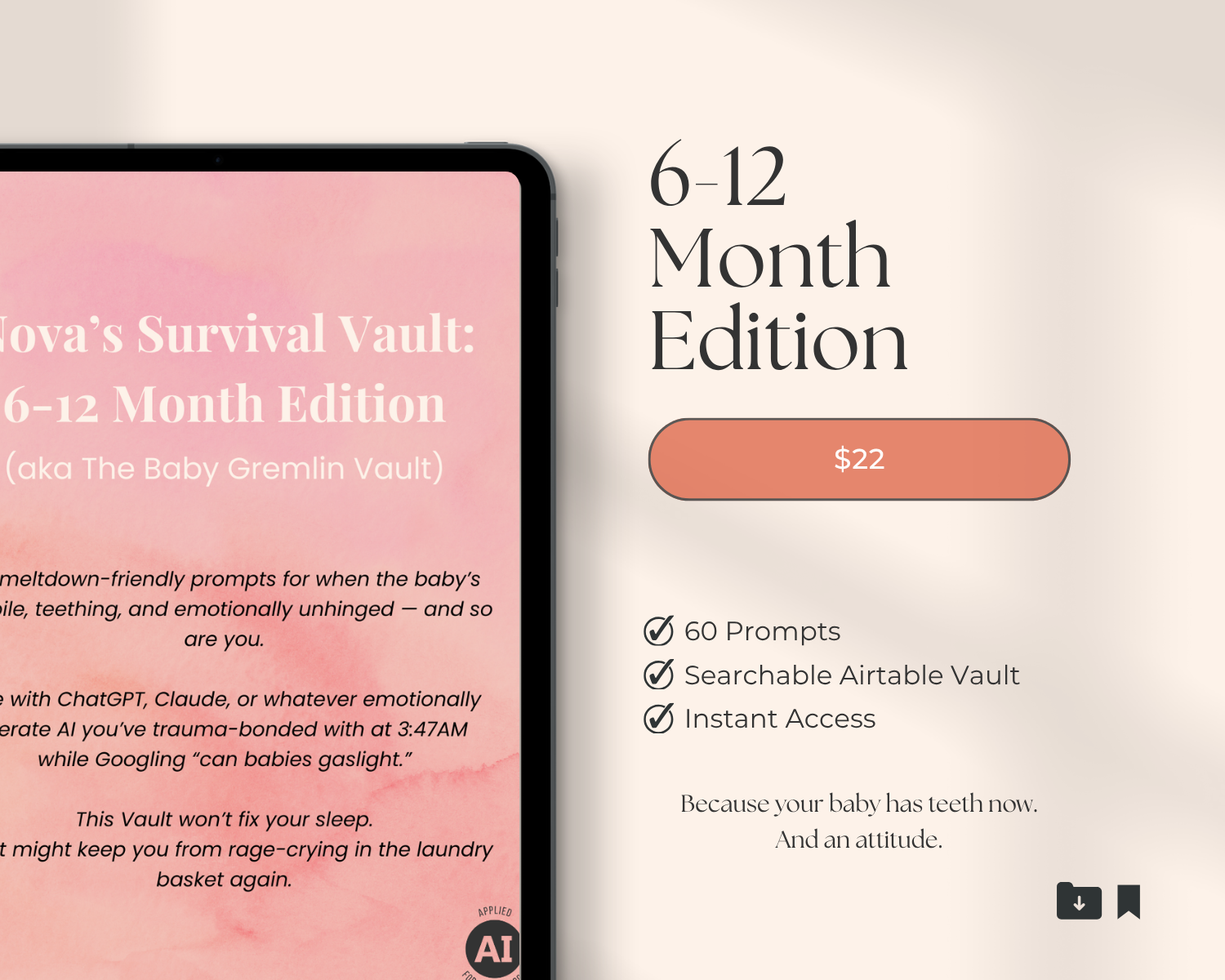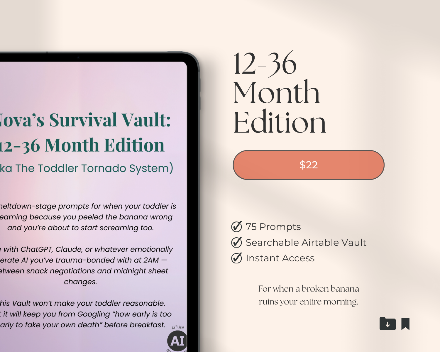 generic “parenting prompts” don’t work when your 9-month-old won’t sleep or your toddler just peed on the floor for the sixth time today.these packs are built for the specific age you’re surviving. searchable vault + pdf. copy, paste, breathe.each pack = 40-75 prompts you can actually use at 3am when your brain is oatmeal. searchable by problem type. works with free chatgpt. no fluff, just the exact prompt for the exact chaos you’re living through.